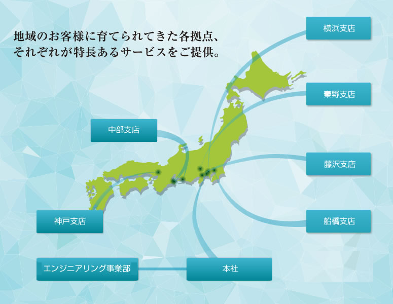 エンジニアリング事業部 | 〒231-0005 神奈川県横浜市中区本町4 - 43 A- PLACE馬車道6 F TEL: 045-264-6018(代) FAX: 045-264-8382 |